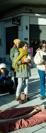 Dos recorridos caminando suceden en simultáneo por la Ciudad Vieja de Montevideo para terminar en una experiencia multisensorial en el MAPI. Mujeres guías acompañan los recorridos invitando a les espectadores-acompañantes a conocer recovecos de la Ciudad Vieja así cómo historias del pasado y el presente, imaginando futuros posibles. Ambos recorridos y sus personas se encuentran en el MAPI para compartir una experiencia que invita a descansar, percibir y conocer el imaginario que el colectivo tiene de lo que hay después de la extinción.